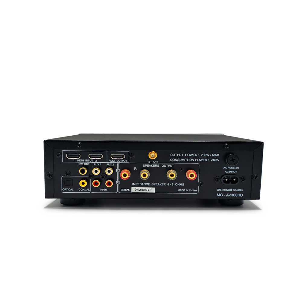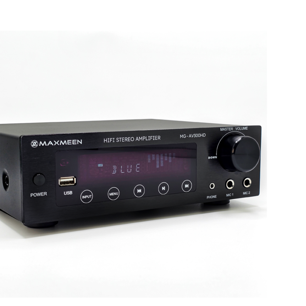 استمتع بصوت غامر ودقيق مع مضخم الصوت Maxmeen MG-AV300HD يجمع هذا المضخم بين قوة الصوت العالية وجودة الصوت الاستثنائية والتصميم الأنيق، مما يوفر تجربة صوتية لا تُنسى في منزلك أو منشأتك