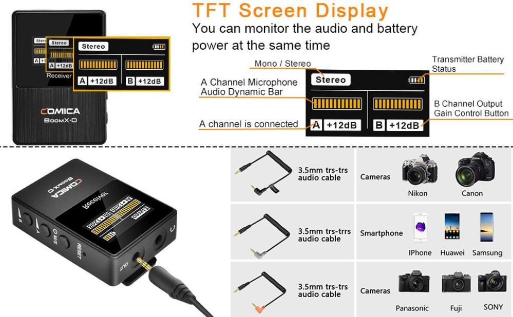 لاقطة كوميكا لاسلكية للجوال وللكاميرا رقمي مع مستقبل 2.4 جيجا 50 م BOOM X-D D1