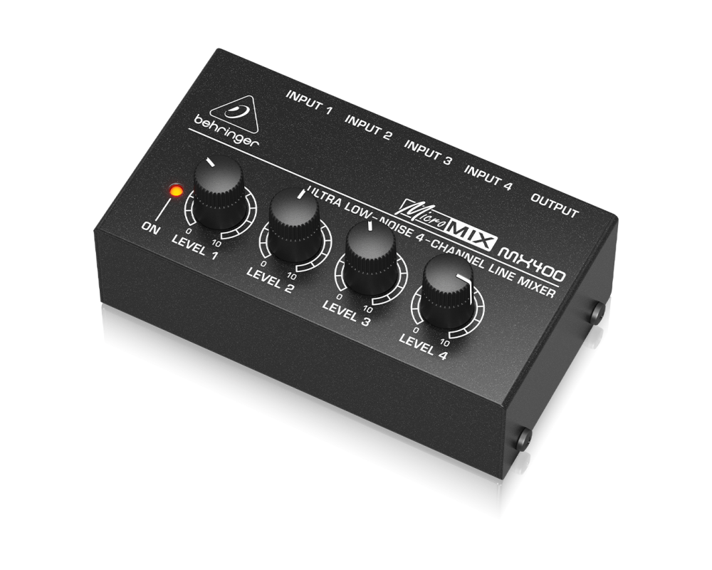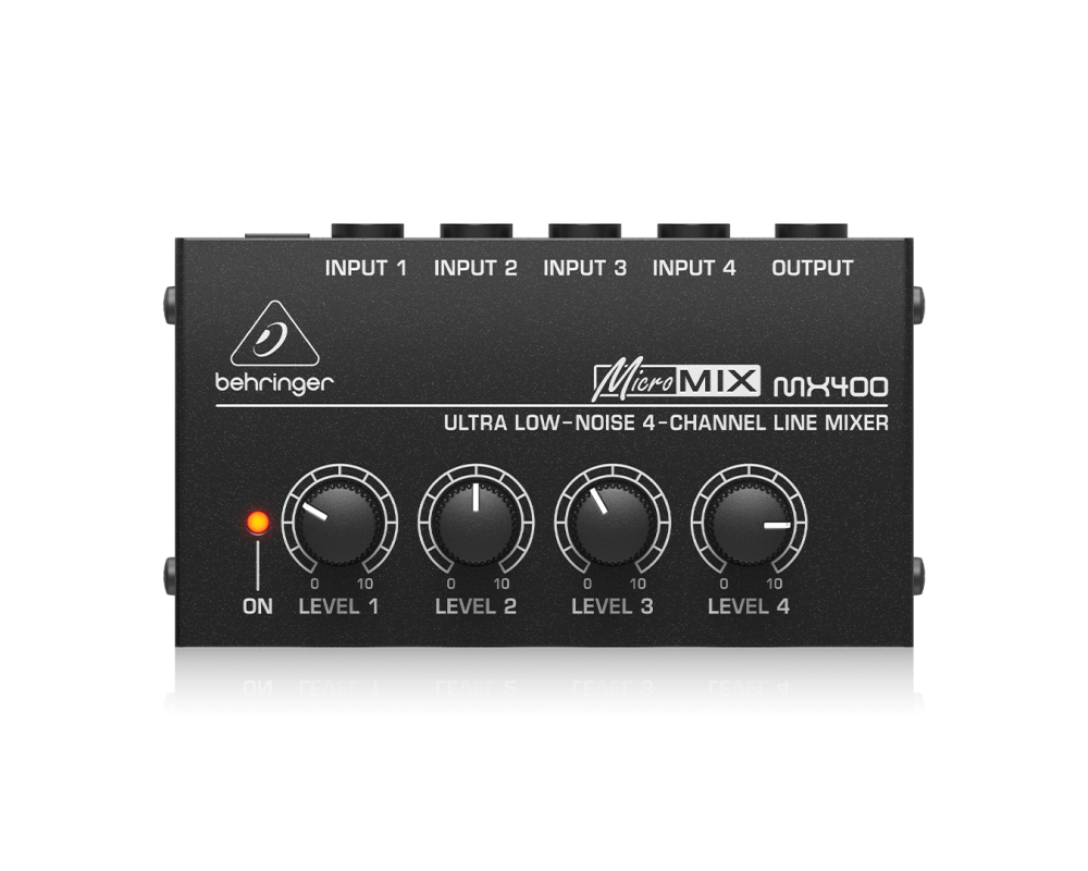 The Behringer MX400 is an ultra-compact 4‑channel line mixer, ideal for blending multiple line‑level audio signals cleanly and effortlessly. Despite its small footprint, it delivers pristine audio even at high levels — perfect for live gigs, home studios, and more